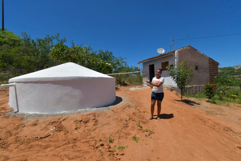 As cisternas denominadas de “primeira água” é um reservatório que capta água da chuva através de calhas e a armazena em um reservatório, garantindo o abastecimento de água em regiões semiáridas. O reservatório comporta 16 mil litros cada. Além de ser uma alternativa eficaz para armazenar água, a cisterna também contribui para a segurança alimentar e nutricional, ajudando a combater a fome. Naira Silva Souza (24) e o esposo Franciel Guedes Rocha, residentes no sítio Olho D’Água, foi uma das famílias beneficiadas com a construção da cisterna e não esconderam a satisfação e contentamento em receber o benefício. “Graças a Deus! É muito bom, porque a gente não tinha água, pegava na casa da minha sogra. É uma benção ter nossa cisterna na porta de casa, vai ajudar muito. A água é uma bênção de Deus, a gente não vive sem água. E graças a Deus, a gente foi contemplado com a cisterna”, comemorou Naira.